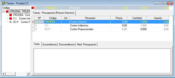 La siguiente imagen muestra un presupuesto nuevo de ARQ+CC: