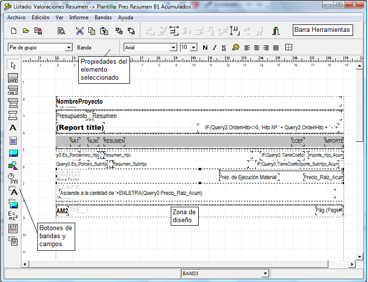 bandas del plantilla, junto las barras de menú y de herramientas para